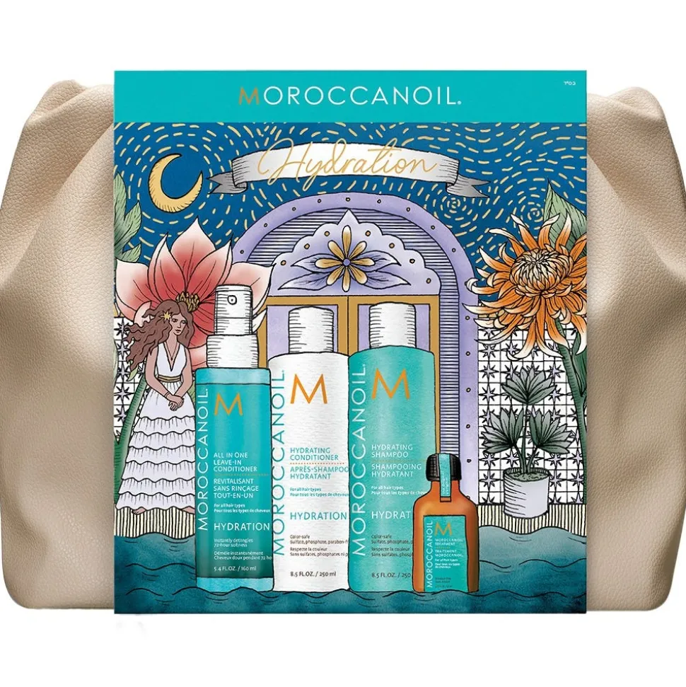 Gönne Deinem Haar die Pflege, die es verdient! Das exklusive Moroccanoil Hydration Kit ist perfekt auf Deine individuellen Bedürfnisse abgestimmt – ob Volumen, Hydration, Reparatur oder Frizz-Kontrolle. Finde das passende Set und genieße strahlend schönes Haar! Das Set enthält 1x Moroccanoil Hydration Shampoo 250 ml, 1x Moroccanoil Hydration Conditioner 250 ml, 1x Moroccanoil All In One Leave-In Conditioner 160 ml und 1x Moroccanoil Treatment Haaröl 25 ml.