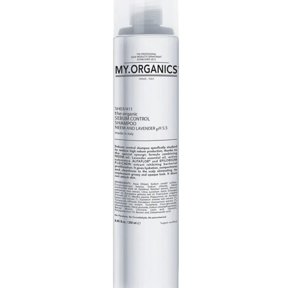 DasMy.Organics My Scalp Sebum Control Shampoo ist ein Talg-Kontroll-Shampoo für fettige Haare spezifisch zur Verringerungder hohen Fettbildung, dank der speziellen aktiven Formel, die aus Neem-Öl, ätherischem Lavendelöl, aktiven ALPAFLOR-Prinzip und EPILOBIUM FLEICHERI-EXTRAKT besteht, die die bakterielle Verbreitung verhindert.