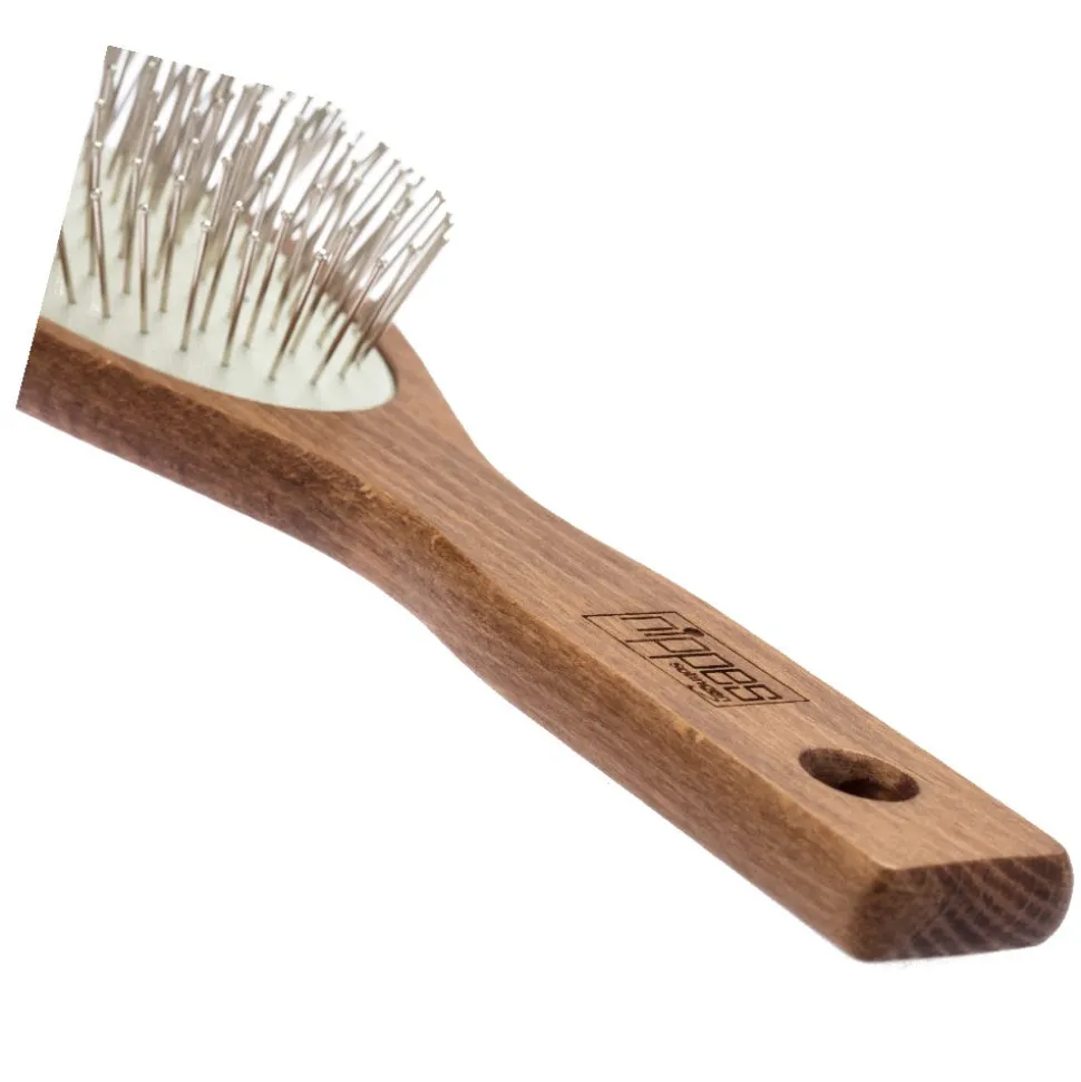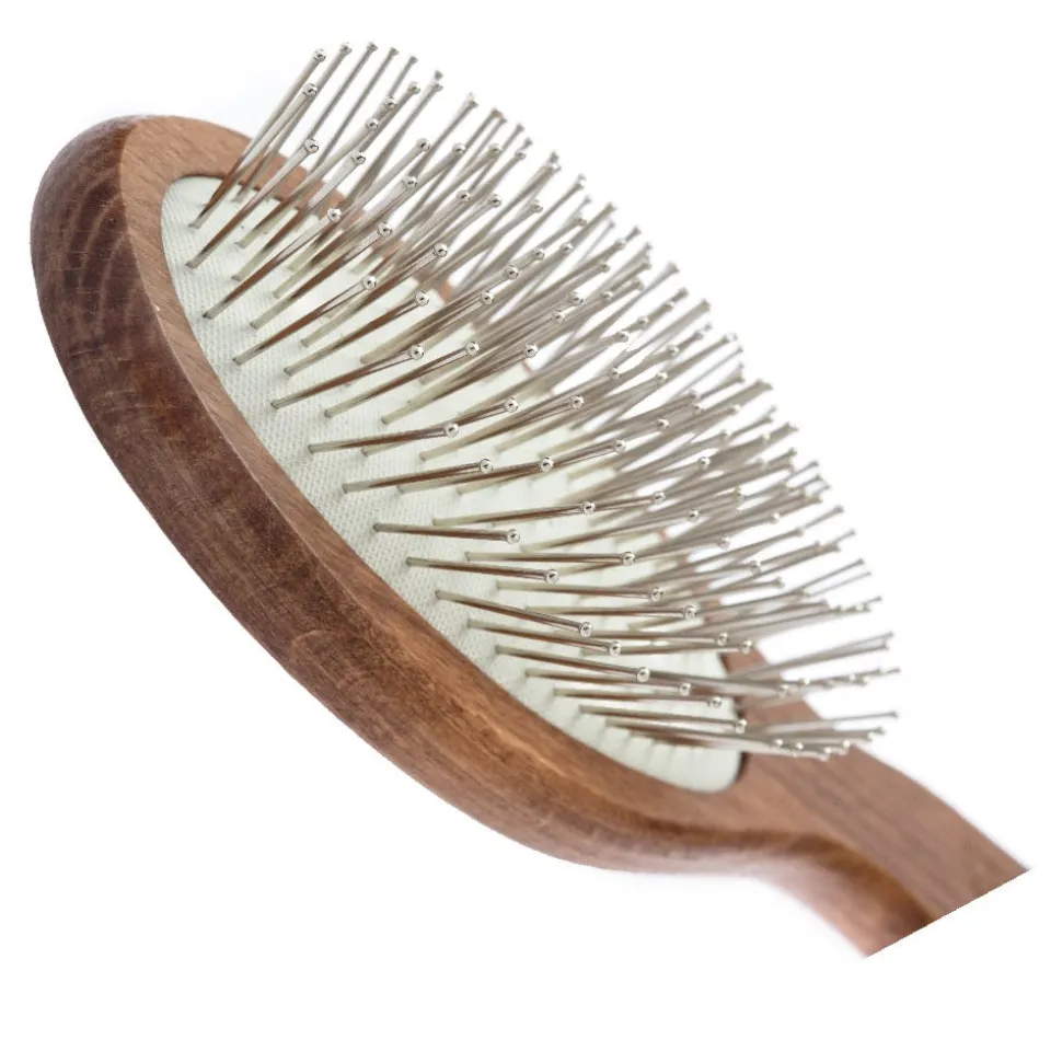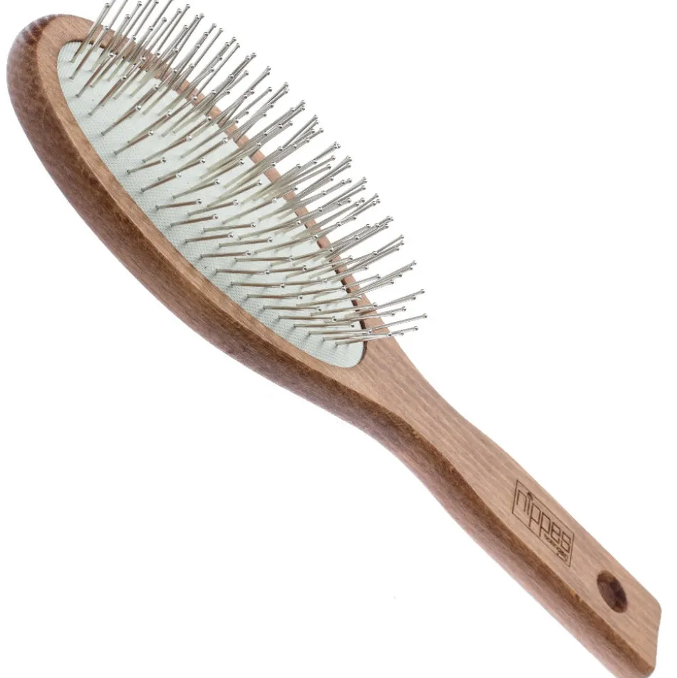 DieNippes H5 Pneumatic-Haarbürste pflegt und entwirrt das Haar.Die Luftpolsterung des Gummikissens ist dabei besonders schonend zur Kopfhaut. Die Haarbrüste ist mit Stahlstiften mit Kugelkopf versehen, um ein angenehmes Styling zu ermöglichen. Die Kugelköpfe sorgen für eine sanfte Kopfmassage und entwirren sowohl trockenes als auch nasses Haar problemlos. Auch ideal zum Stylen.