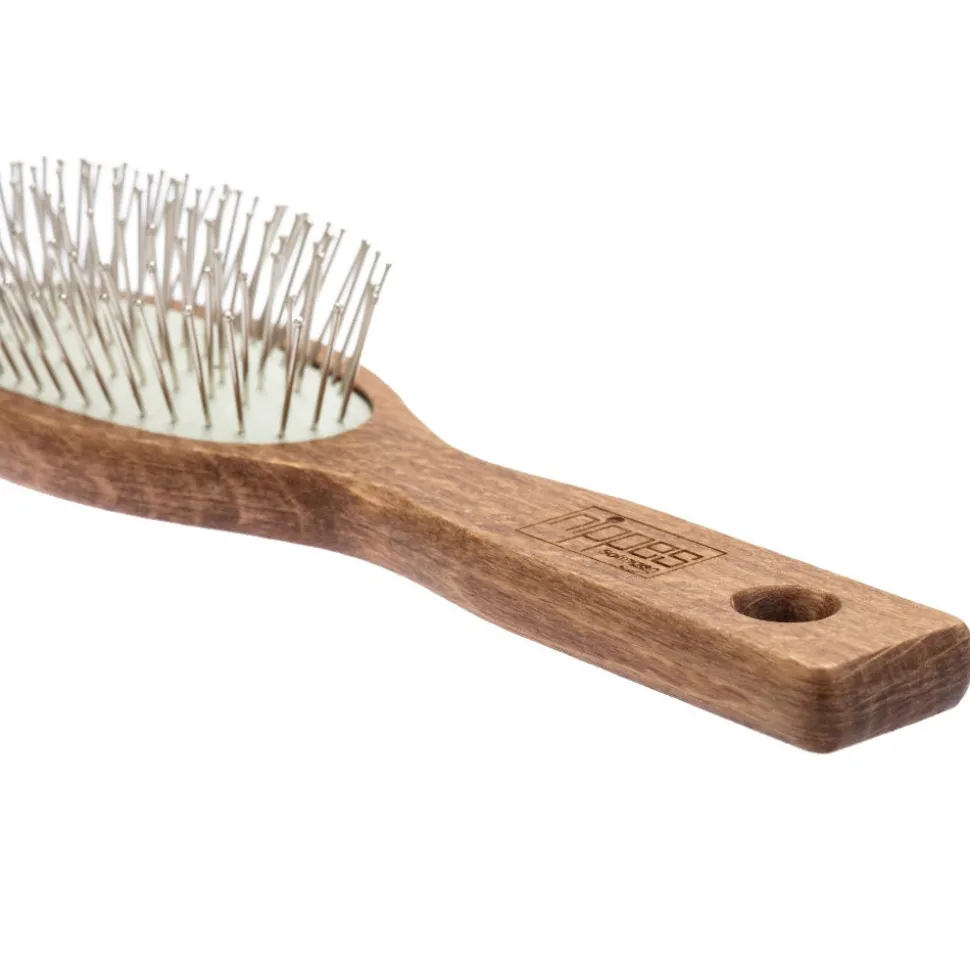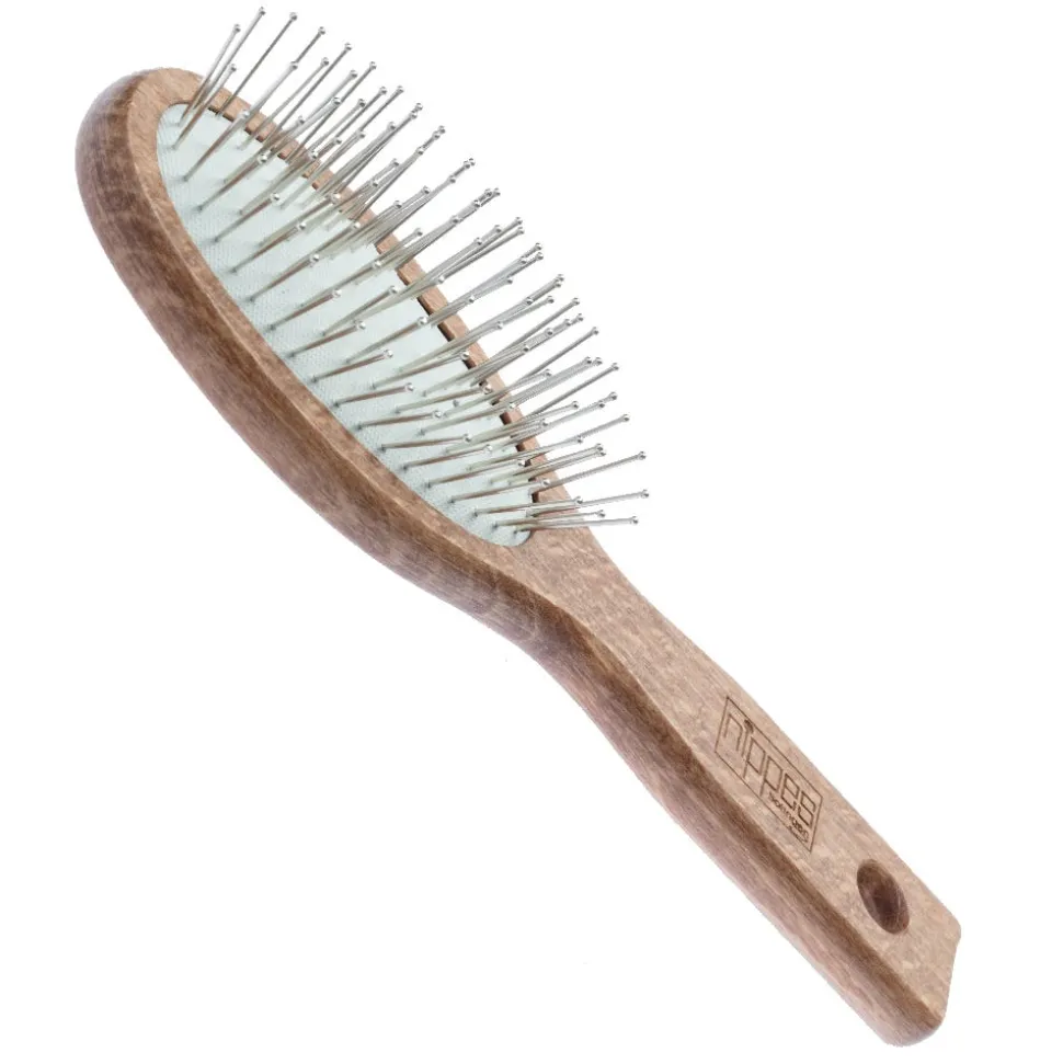 DieNippes H6 Pneumatic-Haarbürstepflegt und entwirrt das Haar.Die Luftpolsterung des Gummikissens ist dabei besonders schonend zur Kopfhaut. Die Haarbrüste ist mit Stahlstiften mit Kugelkopf versehen, um ein angenehmes Styling zu ermöglichen. Die Kugelköpfe sorgen für eine sanfte Kopfmassage und entwirren sowohl trockenes als auch nasses Haar problemlos. Auch ideal zum Stylen.