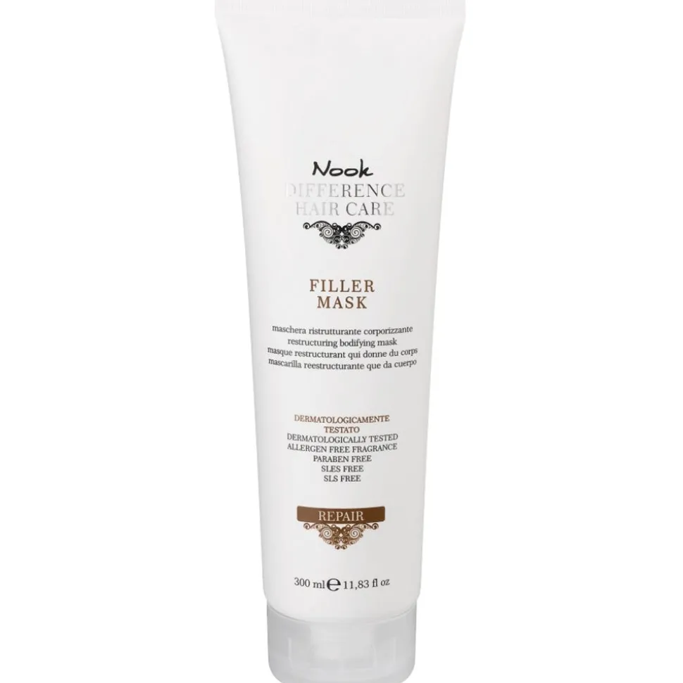 Die Nook Filler Maskist eine restrukturierende, volumenspendende Pflegemaske. Spezifische Pflegemaske für feines, gestresstes und zerfasertes Haar. Wirkt freien Radikalen und der Austrocknung der Kopfhaut entgegen und verbessert dadurch die Struktur des Haarschaftes. Schenkt Volumen,Fülle, Glanz, Geschmeidigkeit ohne zu beschweren. Bei regelmäßigem Gebrauch spendet die Haarkur einen Anti-Krause-Effekt.