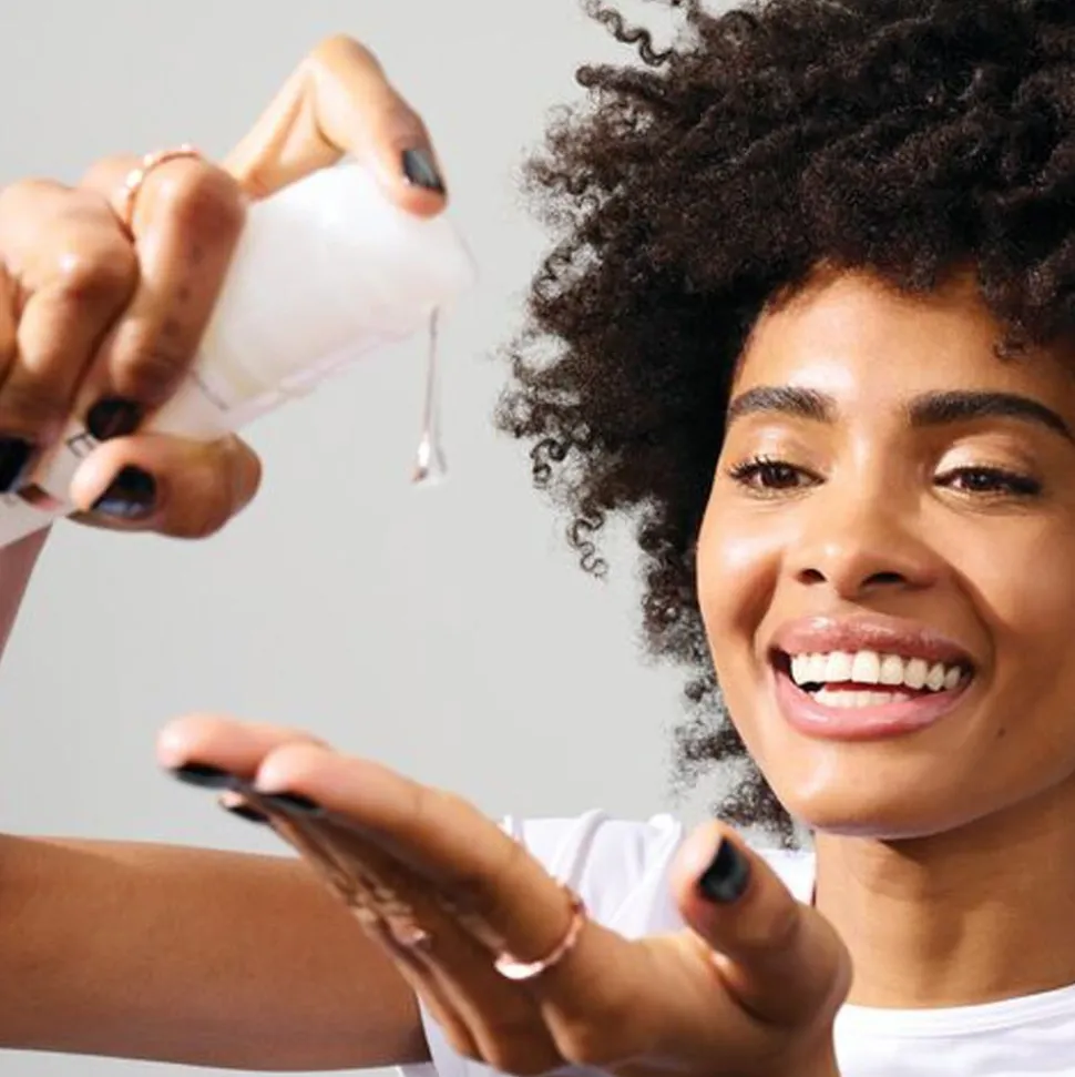 Trage als ersten Schritt deiner Styling-Routine eine kleine Menge auf das feuchte Haar auf und arbeite dich von den Spitzen zum Ansatz vor. Bei längerem, dickerem Haar nach Bedarf mehr verwenden.