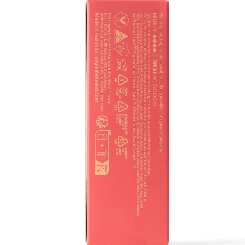 Das Original Mineral Styling Thique Volumising Powderist für alle Haartypen und -längen geeignet, die sich mehr Volumen für die Wurzeln und eine lebendige Textur wünschen. Thique enthält Tapiokastärke, Distelöl, Kakadupflaumensamenextrakt und Fingerlimettenfruchtextrakt. Es verleiht dem Haar Fülle und schließt die Feuchtigkeit ein, um es mit Feuchtigkeit zu versorgen. Mit einem natürlichen Duft nach Minze und Melone.