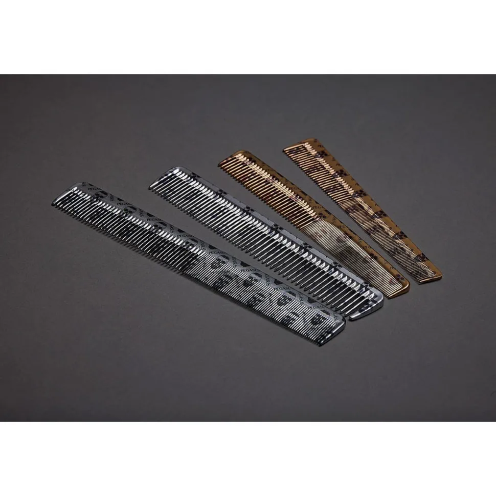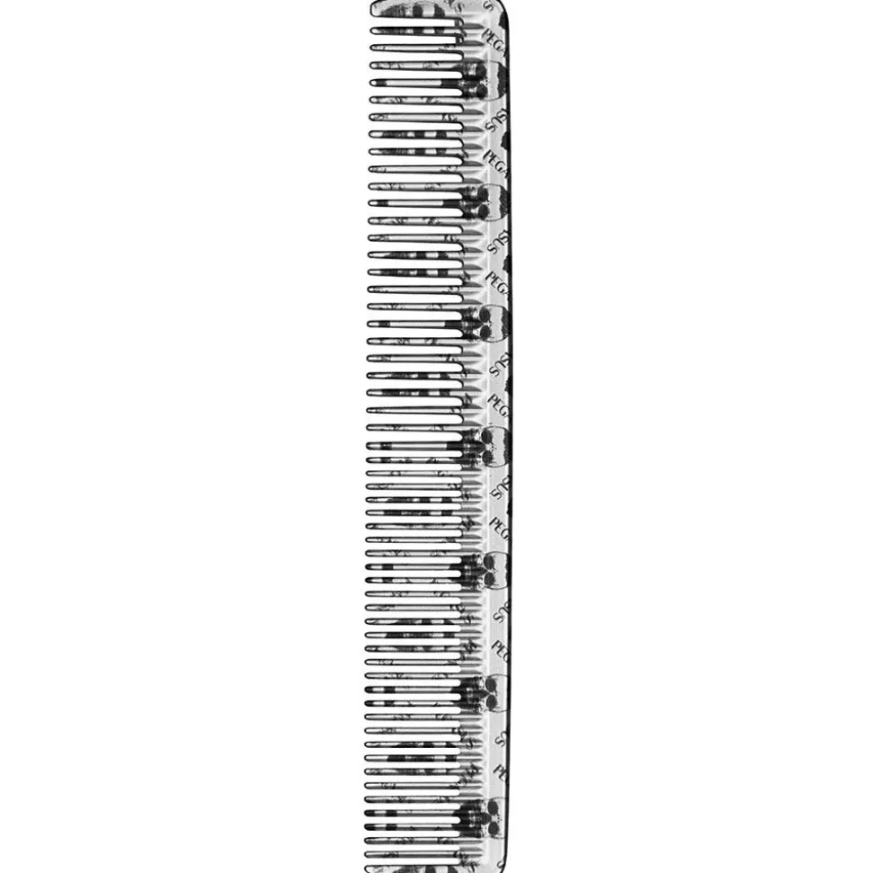Pegasus Skulleto 202 silber Haarschneidekammmit dem charakteristischen Totenkopf-Print. Dieser stylische Kamm wurde handgearbeitet und ist dadurch gratfrei mit perfekt abgerundeten Zähnen, die Haare und Kopfhaut schonen. Das aus Naturkautschuk hergestellte Ebonit gibt dem Haarschneidekamm die perfekten Eigenschaften: Elastisch, leicht und stabil, höchst hitze- und chemikalienbeständig sowie robust und langlebig.