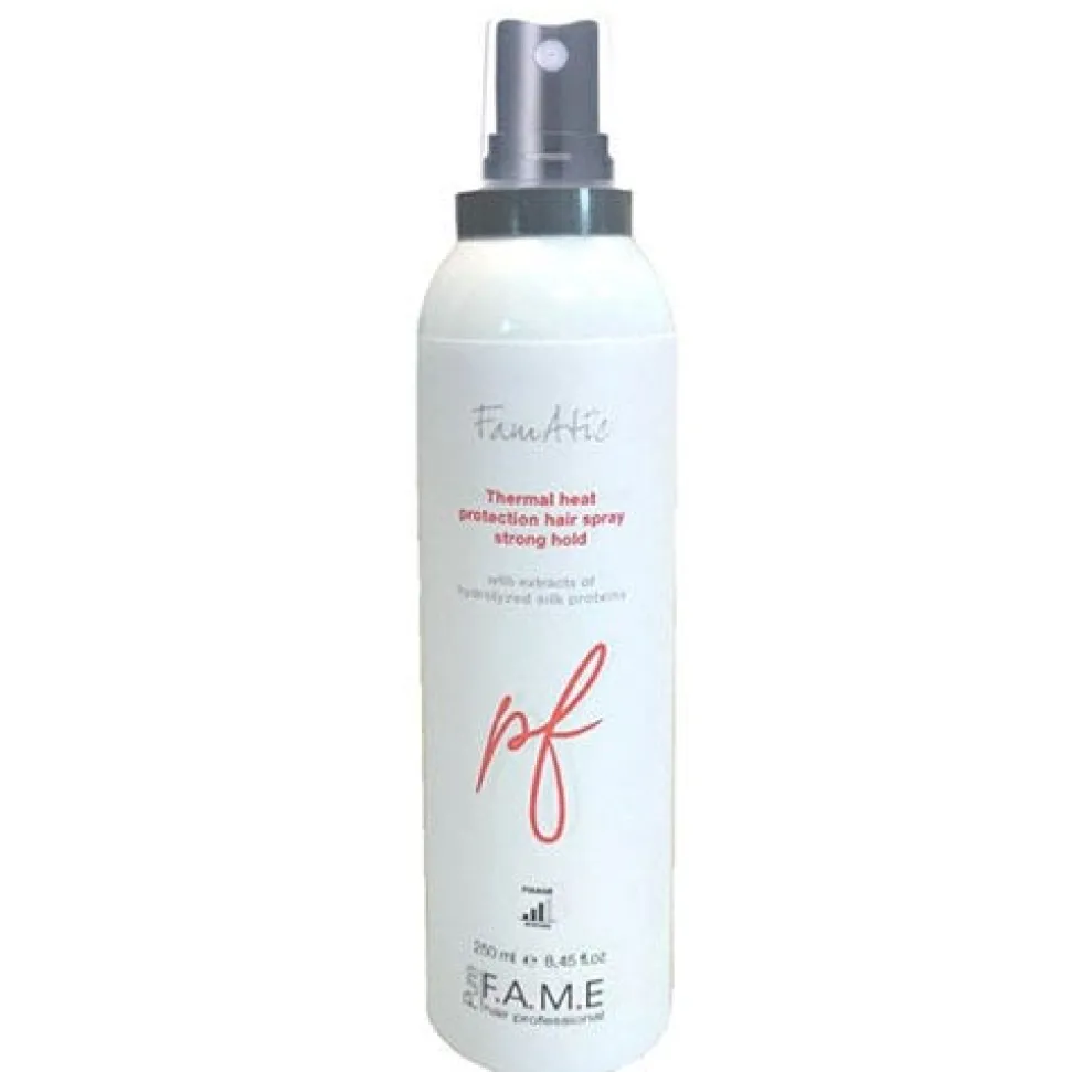 DasPure Fame Thermal Heat Protection Hair Sprayschützt das Haar vor Hitze und Austrocknung bei thermischer Beanspruchung durch Föhn, Glätteisen oder Lockenstab, auch bei hohen Temperaturen. Das Haarspray enthält einen effektiven Wirkstoffkomplex aus Vitaminen und feuchtigkeitsspendenden Proteinen. Zudem bildet es einen Schutzfilm der das Haar weich und glänzend macht. Das Haar wird nicht beschwert, hinterlässt keine Rückstände und gewährleistet einen langfristigen, flesiblen Halt mit Anti-Frizz Effekt.