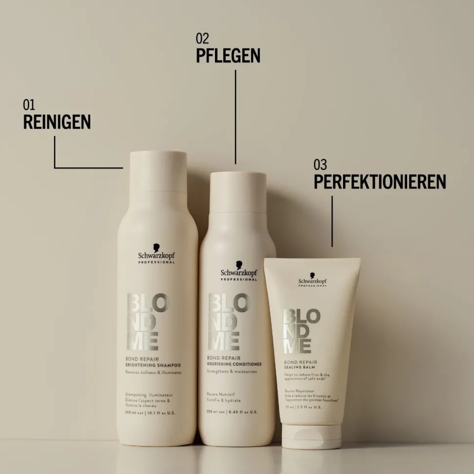 Tipp: Finde Deine maßgeschneiderte Pflege für stärkeres blondes Haar, indem Du die BLONDME Produkte kombinierst.Ergänze Deine perfekte Haarpflege-Routine mit der Bondfinity Deep Repair Mask und dem Sealing Balm für bis zu 20x stärkeres Haar.