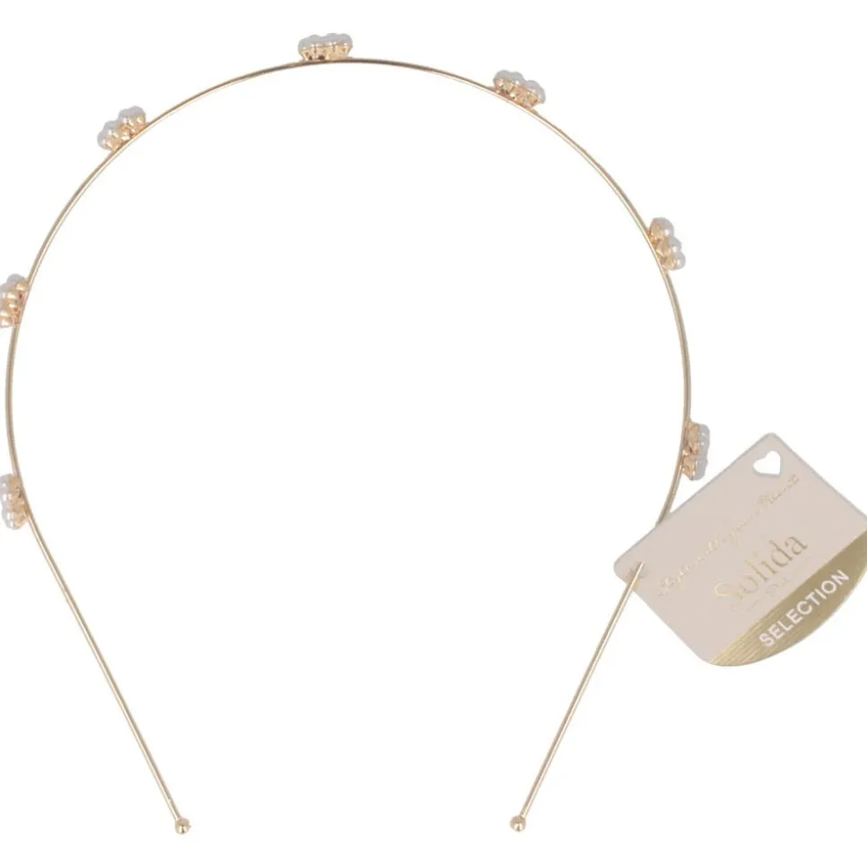 Ganz gleich, ob du kurzes oder langes Haar hast, der Solida Haarreif gold Blumenapplikation ist das ideale Accessoire.