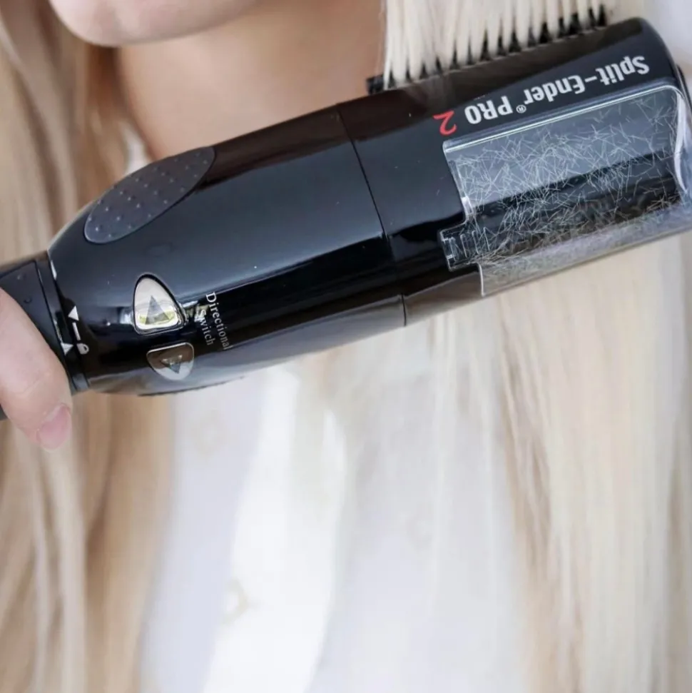 Das Haar sollte trocken und gewaschen sein. Vor der Benutzung die Haare vollständig entwirren und von Knoten befreien, damit keine Haare ausgerissen werden. Der Split-Ender Pro2 sollte leich durch das Haar gleiten. Einzelne Haarsträhnen in das Gerät einlegen und mit einer geraden Bewegung druch das Haar führen.