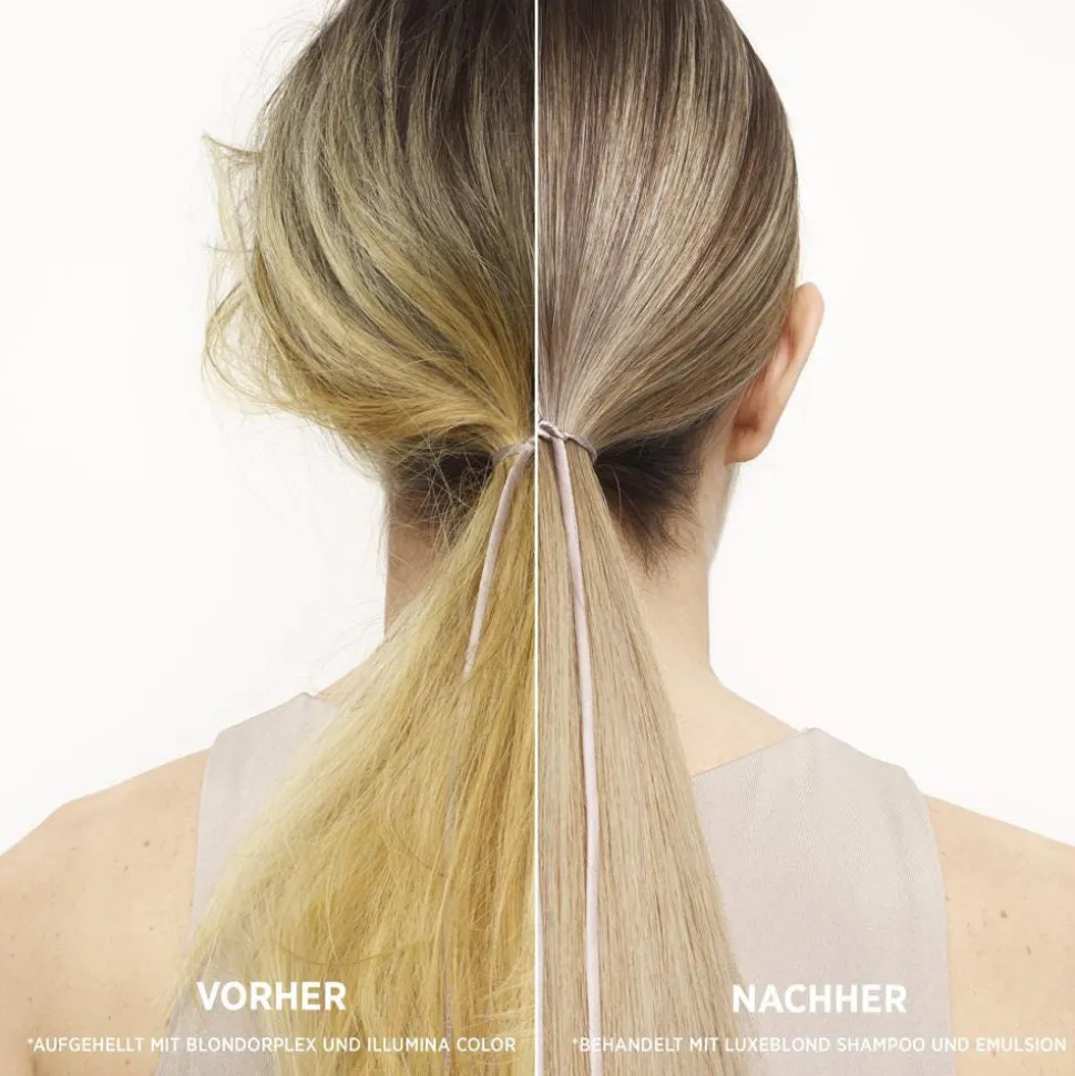 Die LuxeBlond-Linie hilft, die Haarfaser von innen heraus zu reparieren und neutralisiert sofort unerwünschte warme Untertöne. Zusammen bekämpfen die Rezepturen von LuxeBlond die größten Probleme bei aufgehelltem Haar – für glatteres, kühleres blondes Haar, gestärkt gegen Haarbruch.