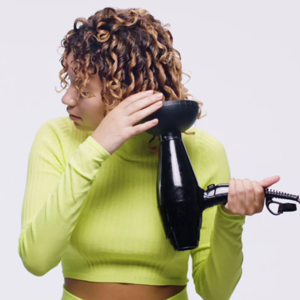 Von den Längen bis in die Spitzen ins handtuchtrockene Haar einarbeiten, einzelne Haarsträhnen mit den Fingern eindrehen oder kneten, um Locken und Wellen zu definieren. An der Luft trocknen oder mit dem Diffusor bearbeiten – für Locken jenseits von Gut und Böse!
