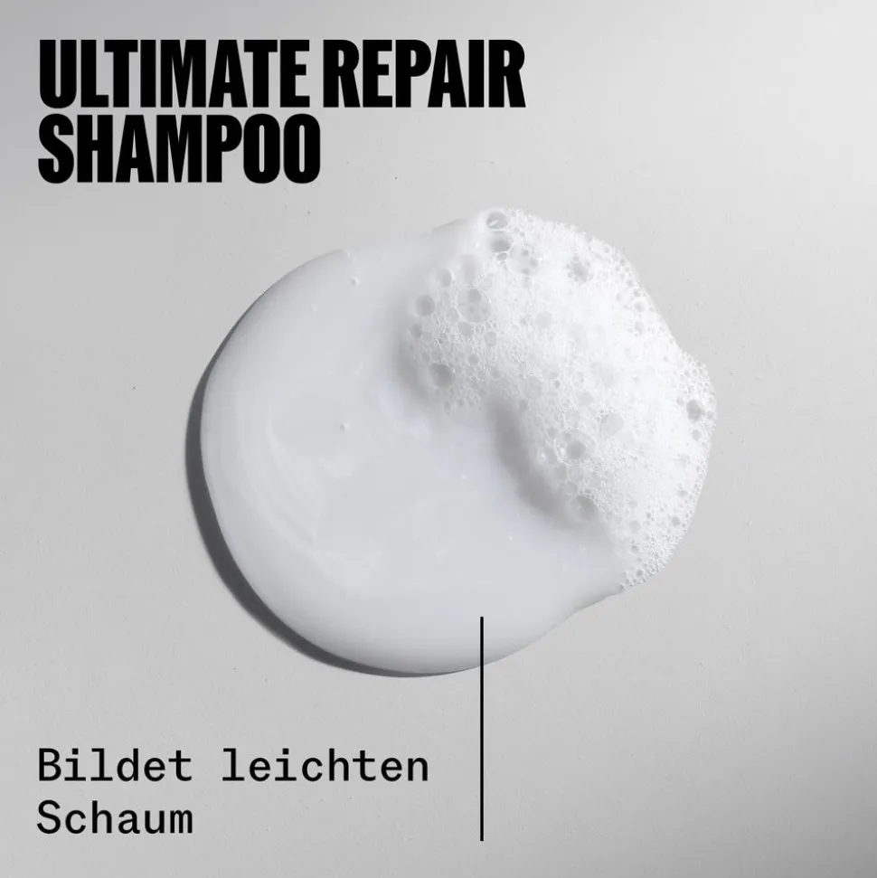 - Step 1:Reinigen & vorbereiten – Das Haar wird mit dem Ultimate Repair Shampoo gereinigt und auf die Pflegeroutine vorbereitet.Das Creme-Shampoo mit Metal Purifier Technologie befreit die Haare von Metallen, Verunreinigungen und Schadstoffen. Um das Shampoo leichter einzuarbeiten, das trockene Haar vorab bürsten. Anschließend das Shampoo im nassen Haar aufemulgieren und von der Kopfhaut bis in die Haarspitzen verteilen. Die Anwendung kann ruhig wiederholt werden, denn hier gilt: lieber zweimal mit einer kleineren Menge shampoonieren als einmal mit mehr Produkt.